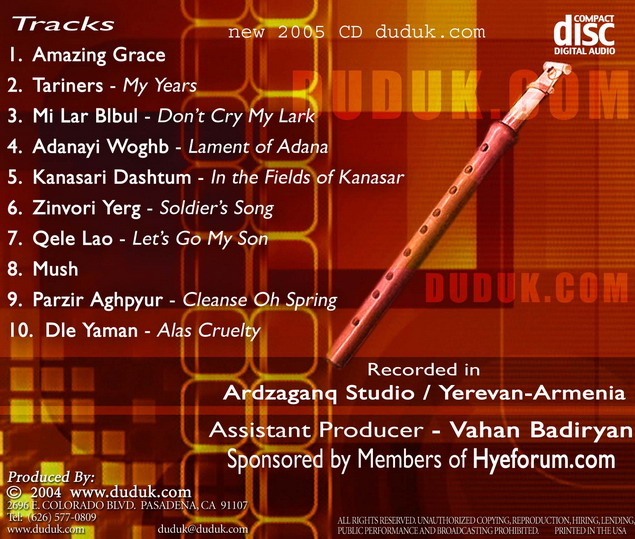DUDUK.com is Proud to Present Jivan Gasparyans NEW 2005 CD/Album |